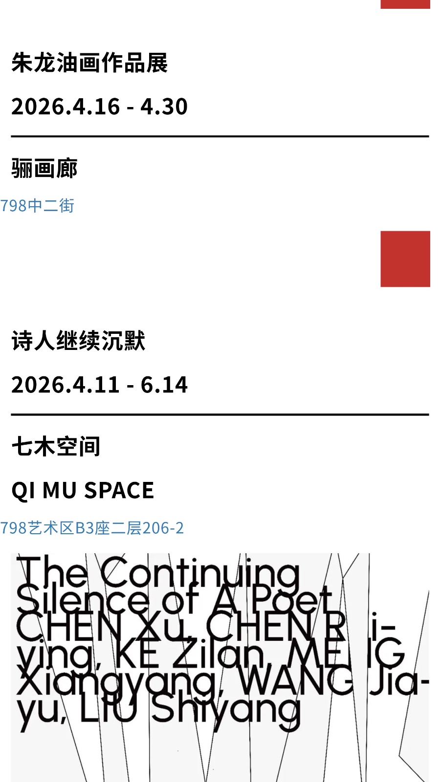 四月798艺术区展览日历
